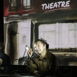Théâtre – Projection dès 8 ans45 minTarif B + Famille Didier Ruiz – La compagnie des Hommes d’après le roman d’Irina Drozd Avis aux petits et grands, amateurs de sensations fortes ! Venez découvrir une épatante enquête théâtrale. Deux comédiens pétulants jouent de leurs perruques et accessoires pour nous plonger dans un « polar spectacle », à mi-chemin entre l’émission radiophoniqueet une séance de cinéma. Daniel s’est abîmé les yeux lors d’un séjour aux sports d’hiver. Il doit rester dans l’obscurité totale pendant quelques jours. Une nuit, il est réveillé par un cri et des râles venant de la rue. Il se précipite à la fenêtre mais ne voit rien. L’assassin, lui, l’a très bien vu. Daniel court désormais un terrible danger… Témoin d’une tentative de meurtre, parviendra-t-il à échapper au tueur ?À la fin de la séance, petits et grands sont invités à partager leurs hypothèses, en sirotant une grenadine. Tarif B : plein : 18€ / Réduit : 12€ / Abonné adulte : 11,50€ / Abonné jeune : 6€ + tarif famille 7€ Texte Irina DrozdMise en scène Didier RuizAvec Nathalie Bitan & Laurent LévyAdaptation Nathalie Bitan et Didier RuizScénographie Solène FourtDessins Nathalie BitanVidéo Zita CochetSon Adrien CordierRégie Zita Cochet Spectacle accueilli dans le cadre d’une tournée mutualisée des partenaires culturels du grand ouest Résidence artistique en milieu scolaire, avec l’école F. Leizour et le collège J. Prévert Représentations scolaires lundi 8, mardi 9, mercredi 10 décembre
